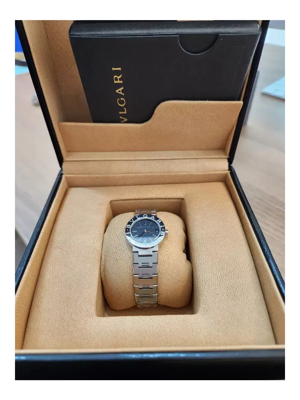 불가리 BB 23SS 쿼츠 여성 시계이고, [폴리싱, 배터리 교체 완료] [새 상품 컨디션] [불가리 정품 케이스, 보증서 풀패키지 세트] [시계 구매 시 1년 무상 보증] 관리 잘 된 중고 명품 시계 입니다. 궁금한점 연락주세요