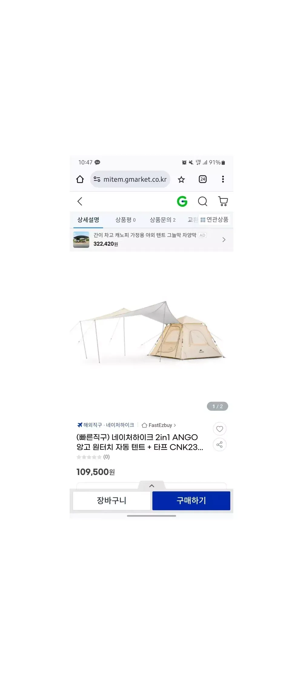 텐트, 타프 일체 & 독립형으로 사용할 수 있는 제품입니다. 살짝 펴보고 접었습니다. 0.5회 사용? 정도로 치면 될 것 같습니다. https://link.gmarket.co.kr/a1ENmP6L7
