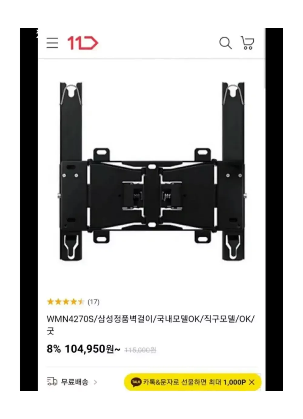 삼성정품벽걸이티비브라켓 요약정보 및 구매