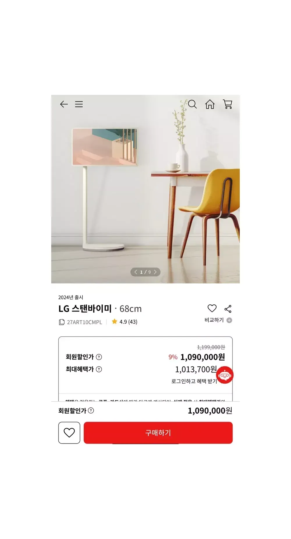 [미개봉 새제품] LG스탠바이미 27ART10CMPL 2024 출시 요약정보 및 구매