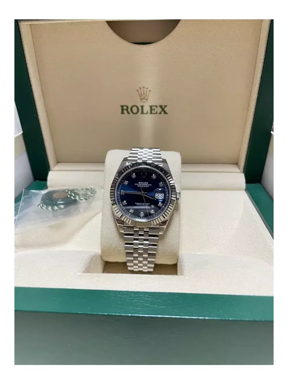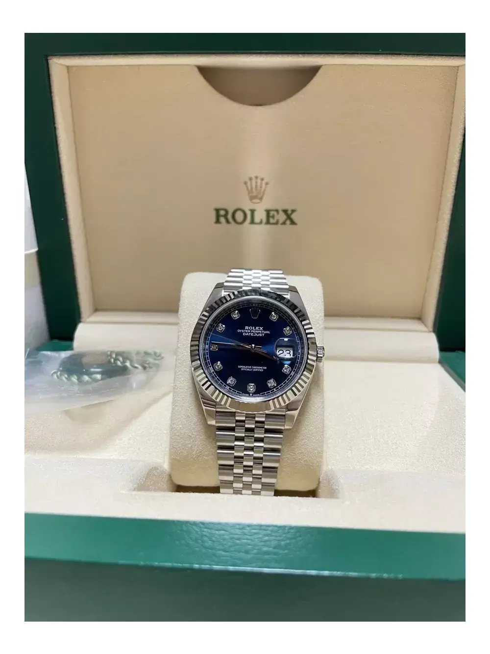 로렉스 126334 데이저스트 41미리 청판 텐포다이아 판매해요. 시계년식은 21년10월식 이고, 구성품은 국내백화점영수증,개런티카드,박스,책자,메달,백화점에서 받은 구성품 풀세트로 다있습니다^^ 시계상태는 매우좋습니다ㅎㅎ